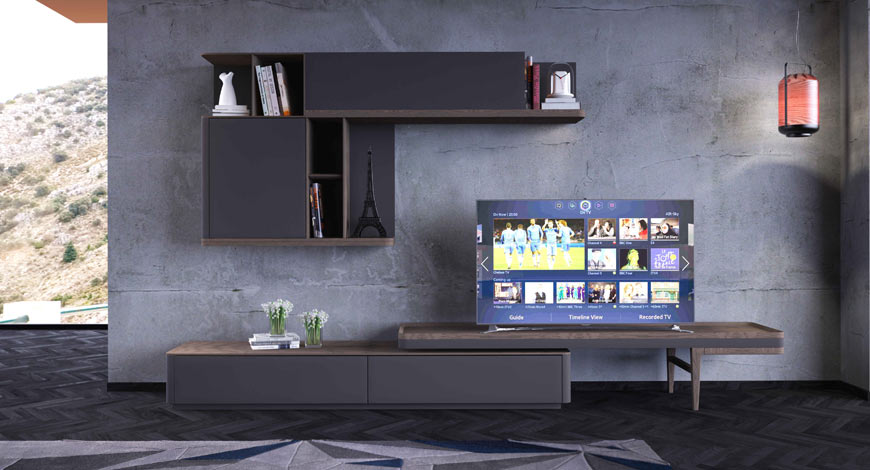 Şıklığı ve sadeliği evinize taşıyan TV ünitesi, raf ve üst modülleri ile size alternatifli kullanım kolaylığı sunacak