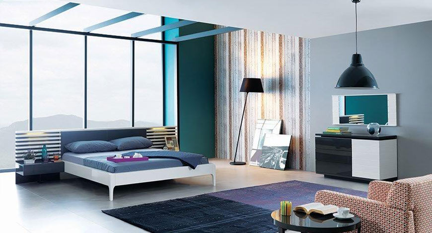Yatak odanıza sadeliğin gösterişini taşıyın. Farklı yatak başlığı tasarımı, bazalı beyaz ve mavi ağırbaşlılığının buluşması ile hayat bulan sakinliğine bayılacaksınız.