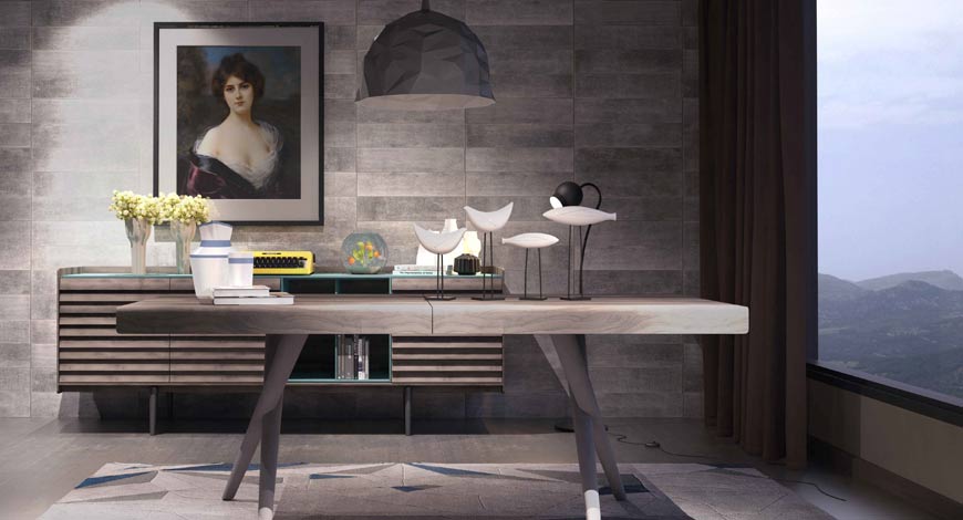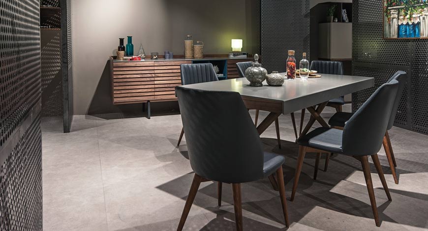 Modern çizgilerle geometrik yorumlar… Her şey, doğal ceviz ve taş renginin bir araya gelip zarif bir tasarım oluşturmasıyla başlıyor. İnce hatlarıyla ön plana çıkan Siento Yemek Odası, yerden yüksek ayak yapısıyla zarif bir görünüm sunarken işlevselliğiyle de kullanım kolaylığı sağlıyor.